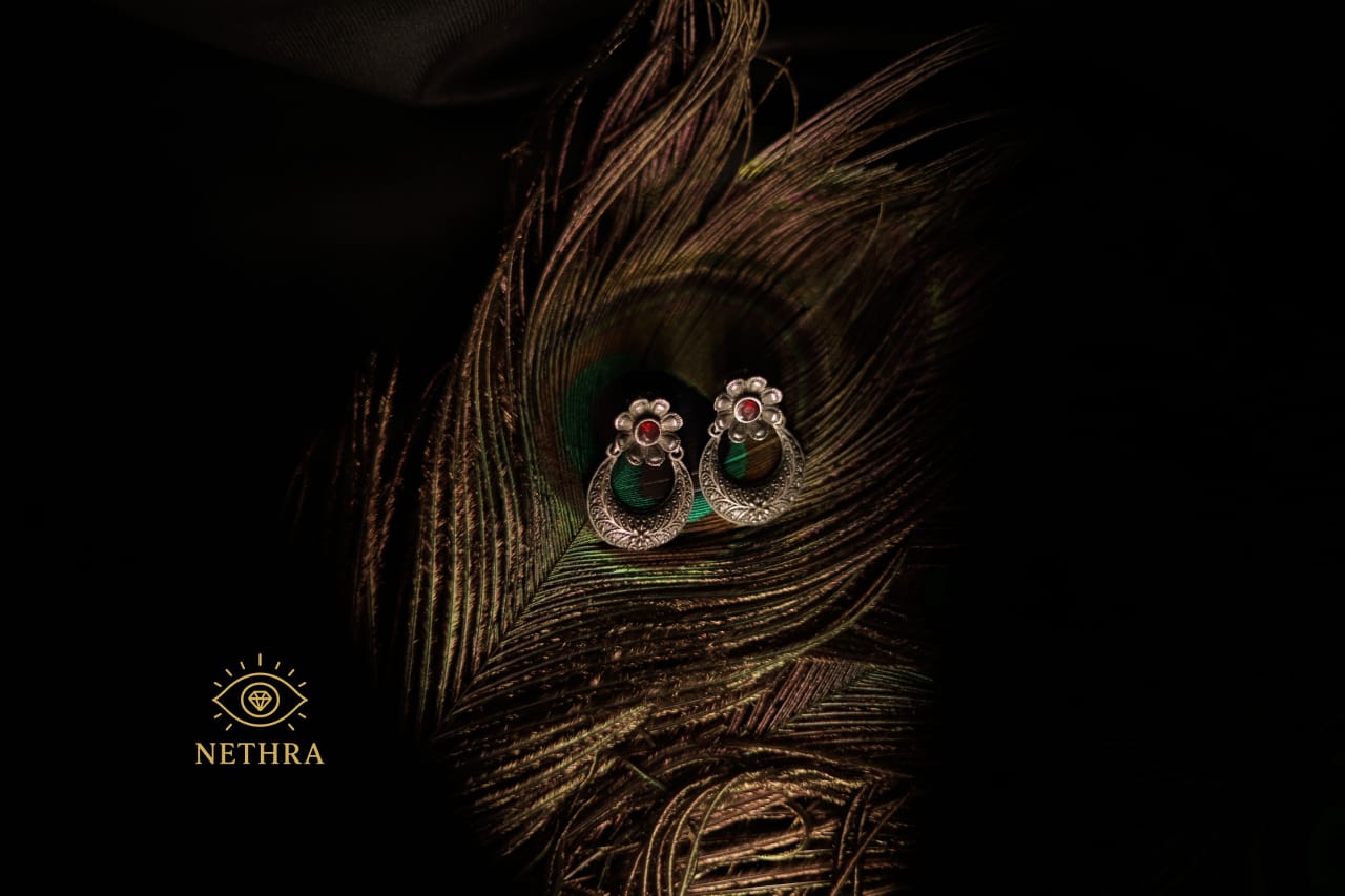 Oxidized Silver Floral Earrin…